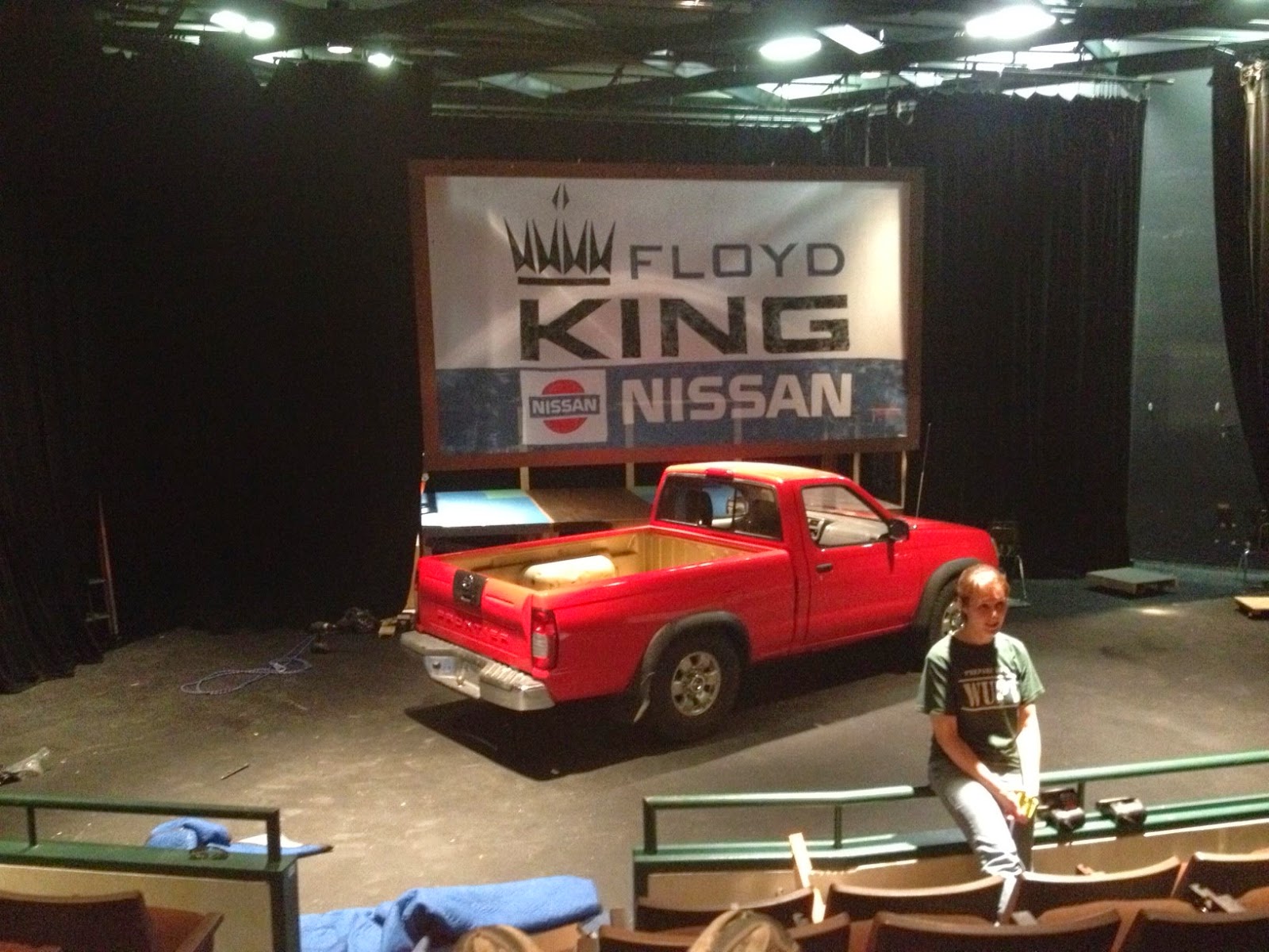 and out into the first couple of rows of the audience. It brings the top down just a little bit on the parking lot. I think that with stage lights and the parking lot lights on, it will feel like a real car lot.